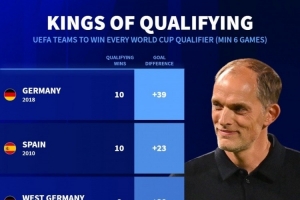 德國(guó)轉(zhuǎn)會(huì)市場(chǎng)盤點(diǎn)了單屆歐洲世預(yù)賽全勝球隊(duì),德國(guó)、西班牙、英格蘭、荷蘭在列。