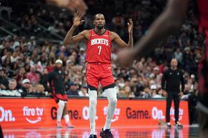 首節(jié)比賽,火箭前鋒凱文·杜蘭特發(fā)揮出色,他多次憑借個(gè)人能力單打硬解,幫助球隊(duì)緊咬比分!