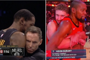 >杜蘭特接受采訪遭申京熊抱!申京:瑪?shù)路宋覀兙褪沁@樣贏球的" />