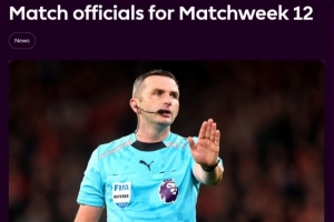 體育資訊11月18日訊 英超官方公布聯賽第12輪各場執(zhí)法裁判,邁克爾-奧利弗將執(zhí)法阿森納vs熱刺。