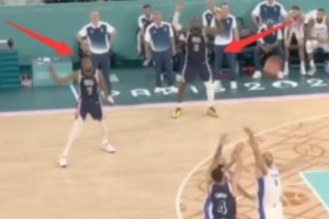 談到巴黎奧運(yùn)會(huì)決賽“金色匕首”驚世一投,庫(kù)里笑道:“我到現(xiàn)在想到那張照片就想笑,你(指詹姆斯)和KD在那兒高舉著雙手(要球)?!?/p>