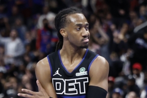 活塞球員詹金斯此役表現(xiàn)依舊不錯(cuò),他不僅自己得分效率很高,在組織上也很好地分擔(dān)了康寧漢姆的壓力。
