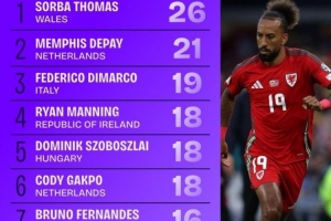 體育資訊11月20日訊 本屆世歐預(yù)小組賽已經(jīng)告一段落,squakwa也統(tǒng)計了本屆賽事成功傳中情況,威爾士邊鋒索爾巴·托馬斯領(lǐng)跑。