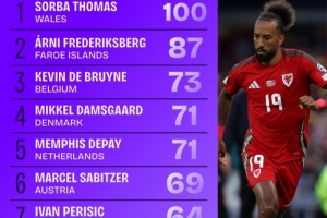 1.索爾巴·托馬斯(威爾士),100次