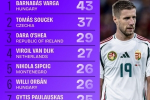 1.巴爾納巴斯·瓦爾加(匈牙利),43次