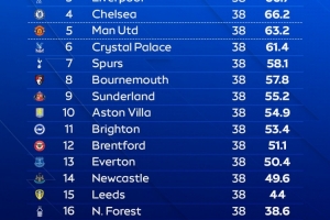 天空體育預(yù)測(cè)英超排名:阿森納奪冠,曼城第二利物浦第三曼聯(lián)第五