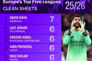 本賽季五大聯(lián)賽門將零封場次榜: