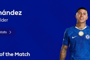 本場(chǎng)比賽恩佐在最后時(shí)刻破門(mén)鎖定勝局,賽后他也當(dāng)選英超官方球迷票選全場(chǎng)最佳球員。