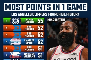 體育資訊11月23日訊 NBA常規(guī)賽,快船131-116戰(zhàn)勝黃蜂。哈登出戰(zhàn)35分鐘,26中17,三分16中10得到55分3板7助攻1搶斷,單場55分創(chuàng)造快船隊史紀(jì)錄。