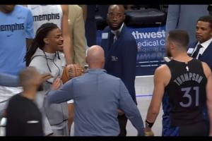 賽后,因傷高掛免戰(zhàn)牌的灰熊球星莫蘭特在場內(nèi)和獨行俠老將克萊發(fā)生沖突,隨后被制止。