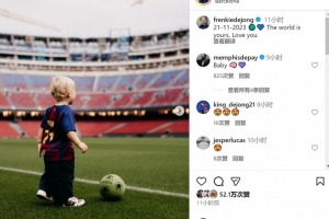 德容的兒子邁爾斯迎來2歲生日,德容社媒曬出邁爾斯在諾坎普球場的照片,配文:“2023年11月21日,這世界屬于你,愛你。”