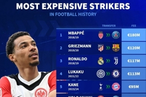 體育資訊7月24日訊 德國(guó)轉(zhuǎn)會(huì)市場(chǎng)統(tǒng)計(jì)了足壇歷史前鋒(中鋒)的轉(zhuǎn)會(huì)價(jià)格,并列出榜單,從法蘭克福轉(zhuǎn)會(huì)利物浦的?;倏伺琶⒘械?位。
