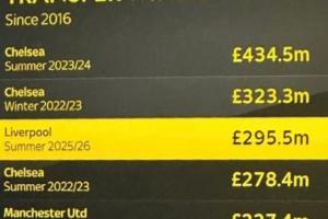 ??英超轉(zhuǎn)會(huì)窗砸錢榜單:切爾西4.35億英鎊排名第一(自2016年以來)