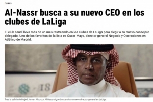 Majed Jaman Alsorour離任后,利雅得勝利一直在尋找合適的接替人選,馬約是備受青睞的候選者之一。馬約在西甲聯(lián)盟中表現(xiàn)出色,他通過青年才俊選拔進(jìn)入西甲聯(lián)盟,并于2017年底晉升為國際發(fā)展總監(jiān),負(fù)責(zé)商業(yè)和品牌推廣工作。2021年,他成為特巴斯的得力助手,并在與CVC基金的歷史性協(xié)議中發(fā)揮了關(guān)鍵作用,這為西甲俱樂部共注入了近20億歐元的資金。