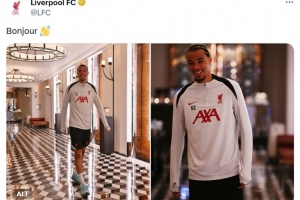 今天,利物浦官方曬出?;倏伺c球隊會合的照片以及視頻,同時用法語“Bonjour(你好)”配文。本周六,利物浦將與米蘭進行熱身賽。