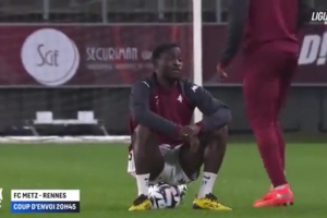 今天凌晨進(jìn)行的第14輪法甲聯(lián)賽,梅斯主場(chǎng)0-1負(fù)于雷恩。在賽前進(jìn)行熱身時(shí),科菲·庫(kù)奧卻一直坐在一個(gè)足球上,拒絕起身和隊(duì)友們一起熱身。盡管隊(duì)友和教練組成員都對(duì)他進(jìn)行了勸說(shuō),但科菲·庫(kù)奧始終堅(jiān)持這么做。
