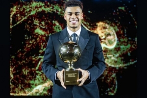 姆巴佩社媒曬出杜埃領(lǐng)獎(jiǎng)的照片,配文:“祝賀你,天才!實(shí)至名歸!盡情享受這一刻,盡快康復(fù),早日歸來!”