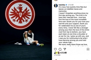 體育資訊7月25日訊 埃基蒂克正式從法蘭克福轉(zhuǎn)會利物浦,這位法國前鋒更新社交媒體發(fā)長文深情告別法蘭克福。