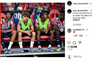 體育資訊7月25日訊 阿森納小將道曼更新社交媒體,表達(dá)了對完成一線隊(duì)首秀的激動(dòng)之情。
