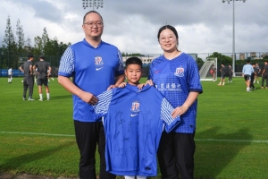 今天下午,上海申花足球俱樂部特別邀請了這對球迷夫婦一家來到久事康橋體育訓練基地。在訓練開始前,主教練斯盧茨基為他們送上簽名球衣,全隊用熱烈的掌聲向他們致以崇高的敬意。