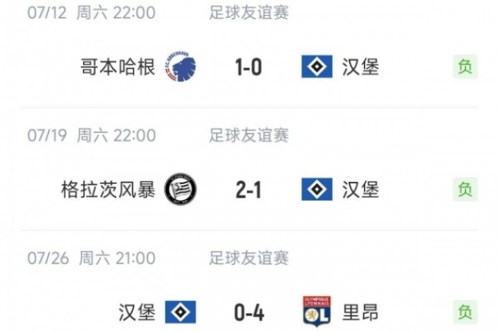 今夏的友誼賽,漢堡已經(jīng)遭遇三連敗了,三場比賽只進1球。剛升級德甲的漢堡這三場比賽分別是:0-1不敵丹超豪門哥本哈根,1-2不敵奧甲新貴格拉茨風(fēng)暴,0-4不敵法甲豪門里昂。
