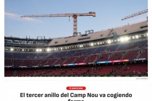 《阿斯報(bào)》表示,諾坎普球場的第三層看臺(tái)正在建設(shè)中,側(cè)門和南門區(qū)域的工程進(jìn)展順利,預(yù)制混凝土板正在安裝中。新的看臺(tái)將比之前的看臺(tái)更高更陡,預(yù)計(jì)將于2026-27賽季完工,頂棚將于2027年底至2028年初之間完成,該球場翻新后預(yù)計(jì)可容納約10.5萬名觀眾。