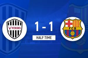 上半場(chǎng)比賽結(jié)束,神戶勝利船1-1巴塞羅那。