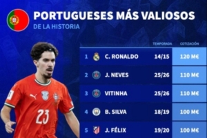 葡萄牙歷史上身價最高的球員排名與數據: