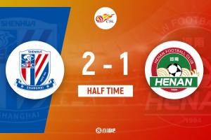 上半場傷停補時7分鐘,半場結(jié)束,上海申花暫2-1河南。