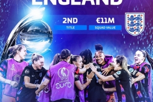 體育資訊7月28日訊 英格蘭女足在歐洲杯決賽點球3-1擊敗西班牙女足,成功贏得了隊史第二座歐洲杯冠軍。