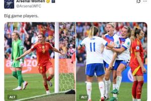 本場(chǎng)決賽雙方在常規(guī)時(shí)間戰(zhàn)成1-1。為西班牙進(jìn)球的是效力于阿森納女足的馬里奧娜-卡爾登蒂。英格蘭方面,進(jìn)球的魯索和助攻的凱莉都來(lái)自阿森納。