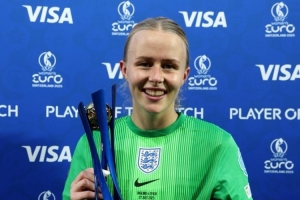 體育資訊7月28日訊 女足歐洲杯決賽,英格蘭女足點球力克西班牙女足,成功實現(xiàn)衛(wèi)冕。效力于切爾西女足的門將漢普頓在點球決戰(zhàn)中撲出兩記點球,她也當選了決賽MVP。阿森納女足大將凱莉攻入制勝點球。