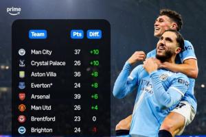體育資訊12月25日訊 英超前17輪過后,轉(zhuǎn)播商亞馬遜統(tǒng)計了英超20隊本賽季相較上賽季圣誕節(jié)時(當(dāng)時為16輪)的積分差距。