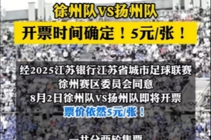 體育資訊7月29日訊 今天《揚州晚報》報道,8月2日徐州隊VS揚州隊的門票即將開票,票價依然5元/張。