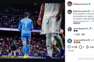皇馬門(mén)將庫(kù)爾圖瓦社媒曬出比賽照片,配文:“精彩的比賽,又一場(chǎng)由我們青訓(xùn)球員的進(jìn)球帶來(lái)的勝利。”