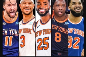 其中,紐約尼克斯先發(fā)五虎皆排在東部前二十,分別是布倫森第二、唐斯第七、阿努諾比第十三、米卡爾·布里奇斯第十五、約什·哈特第十六。