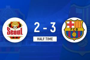 上半場比賽結(jié)束,巴塞羅那3-2首爾FC。