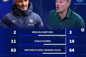 兩隊(duì)自2004年以來共計(jì)在各項(xiàng)賽事交鋒8次,切爾西打進(jìn)11球、取得2勝,巴黎打進(jìn)10球、取得3勝,其余3場(chǎng)比賽握手言和。
