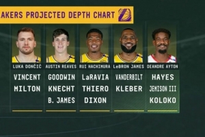 體育資訊8月1日訊 據(jù)DallasHoopsJournal.com記者Ashish Mathur報(bào)道,據(jù)多位消息人士透露,湖人新賽季的首發(fā)陣容預(yù)計(jì)為東契奇、里夫斯、八村塁、詹姆斯和艾頓。