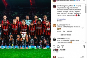 體育資訊8月1日訊 米蘭新援埃斯圖皮尼安更新Instagram,曬出全隊合照。