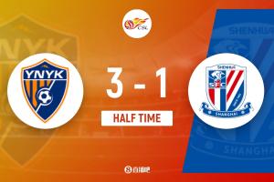 體育資訊08月02日訊 北京時間18:00,中超第19輪,云南玉昆目前半場3-1領(lǐng)先上海申花!
