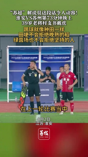 39歲的戴虎在上一輪比賽當(dāng)中,為淮安隊(duì)拿到首個客場三分,立下悍馬功勞,左手分秧苗,右腳傳希望,他以他的實(shí)際行動告訴我們,踢球就像種田一樣,田埂不會拒絕晚熟的稻,而綠茵場也不會拒絕堅(jiān)持的人。其實(shí)在這場比賽當(dāng)中,我更想說的是,我們蘇超給了每一位熱愛足球的人追逐夢想的舞臺。