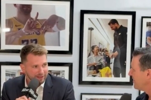 “雖然湖人隊曾設(shè)想濃眉取代詹姆斯成為球隊的門面,但這根想象中的接力棒從未傳遞過。兩年前,湖人隊對濃眉的續(xù)約(2023.8)并沒有像今日對東契奇這樣大肆宣傳,今天新聞發(fā)布會上還搭建了一個以東契奇為主題的照片墻?!盠akeshowlife寫道。