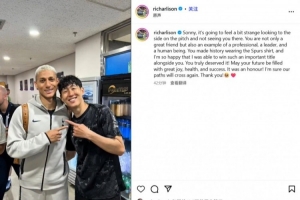 體育資訊8月4日訊 今日,熱刺前鋒理查利森在個(gè)人Ins中告別了隊(duì)友孫興慜。