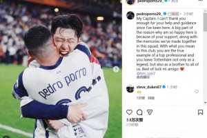 體育資訊8月4日訊 熱刺隊(duì)長(zhǎng)孫興慜確定離隊(duì),預(yù)計(jì)將前往美職聯(lián)加盟洛杉磯FC。對(duì)于這樣的球隊(duì)傳奇離開,熱刺后衛(wèi)波羅在社交媒體上進(jìn)行了告別。