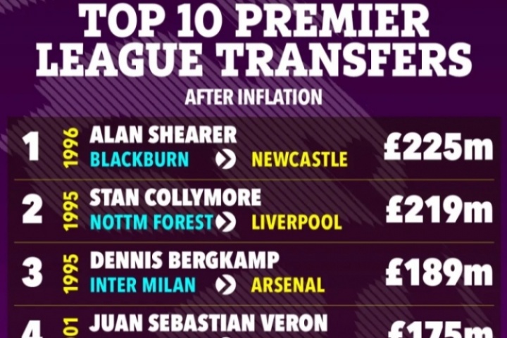 不過(guò)太陽(yáng)報(bào)表示,根據(jù)足球金融媒體Valuball的計(jì)算,如果考慮到通貨膨脹,1.2億鎊甚至無(wú)法進(jìn)入英超歷史前20,目前的第20名為2023年1.15億鎊加盟切爾西的凱塞多,考慮通脹后為1.24億鎊。