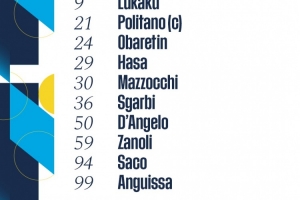 1-梅雷特、9-盧卡庫(kù)、21-波利塔諾、24-M-奧巴瑞汀、29-哈薩、30-馬佐基、36-洛倫佐-斯加爾比、50-丹杰洛、59-扎諾利、94-薩科、99-安古伊薩