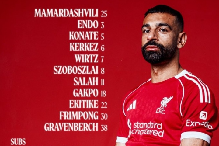 利物浦首發(fā):25--瑪瑪達(dá)什維利、5-科納特、6--科爾克茲、30-弗林蓬、38-赫拉芬貝赫、3-遠(yuǎn)藤航、7-維爾茨、8-索博斯洛伊、18-加克波、11-薩拉赫、22-?;倏?/strong>