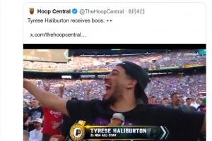 就在紐約附近的新澤西觀眾們給哈利伯頓送上了巨大的噓聲,但是哈利伯頓和在紐約打球時一樣地享受,他不斷揮手示意現(xiàn)場觀眾“噓聲再大一點”。
