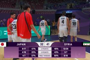 在正在進(jìn)行的日本男籃對(duì)陣敘利亞男籃的比賽,半場(chǎng)結(jié)束,日本男籃32-41落后敘利亞男籃9分。